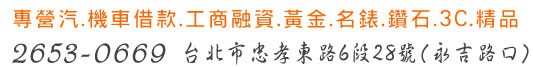 台北市鴻運當舖專業提供汽車借款、機車借款、黃金、鑽石、名錶、3C產品、名牌精品..萬物皆可借款借錢服務。